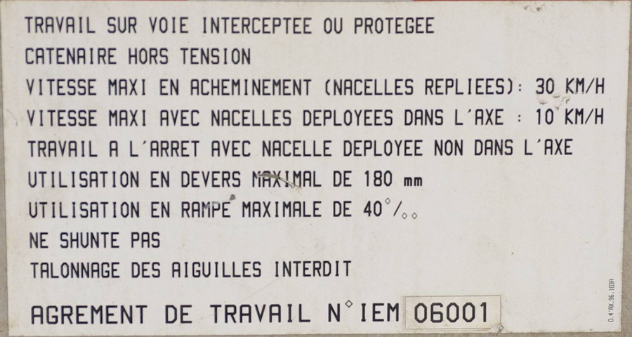 Agrément de travail SNCF IEM 06001 avec marquage Saint Quentin et point d'attache Infralog Saint Quentin