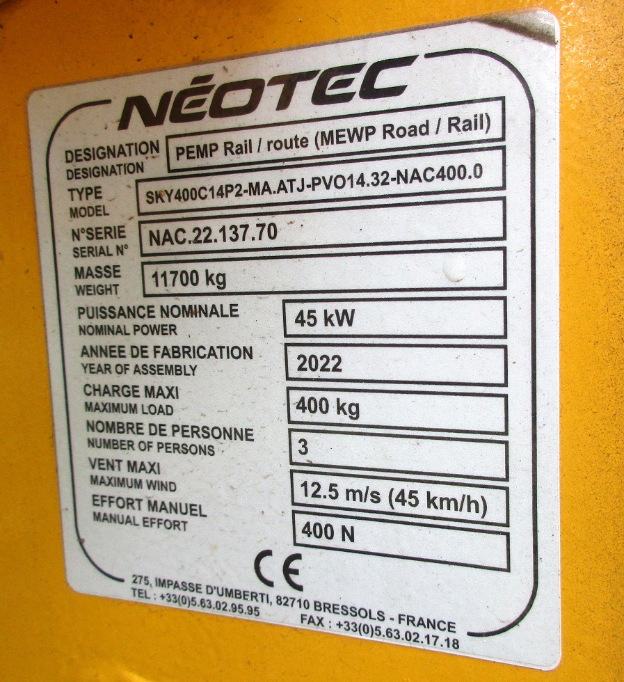 L'identification constructeur de la partie "roulement" (et peut-être également de la plateforme - panier - de la nacelle ?) :