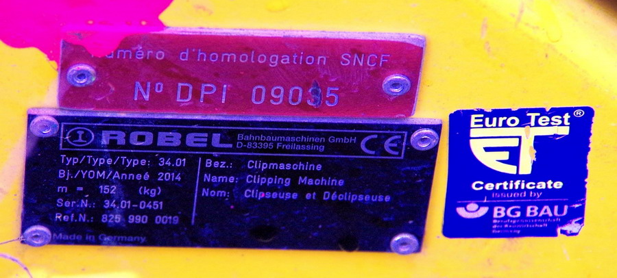 Clipseuse de type 34.01 de Robel Réf 825 990 0026 n°34.01-0451 de 2014 pour Colas Rail 588 atelier Nord