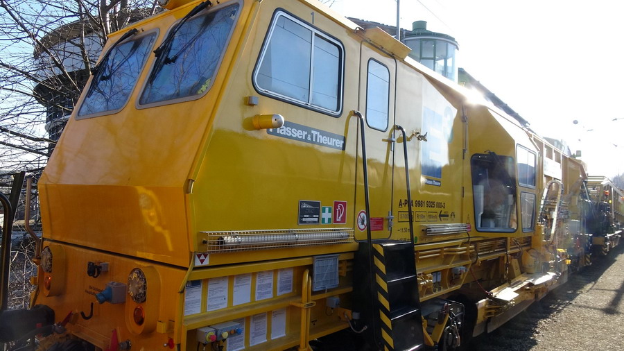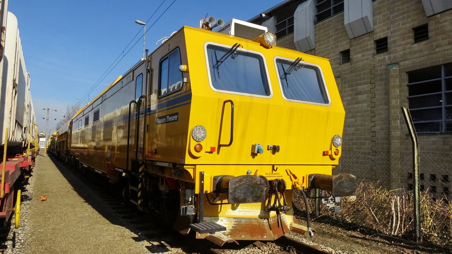 elle se trouve en gare de Saint Pölten en Autriche le 10-03-2018 avec la Bourreuse 09-4X E3 - 99 81 9123 015-2 - PLA