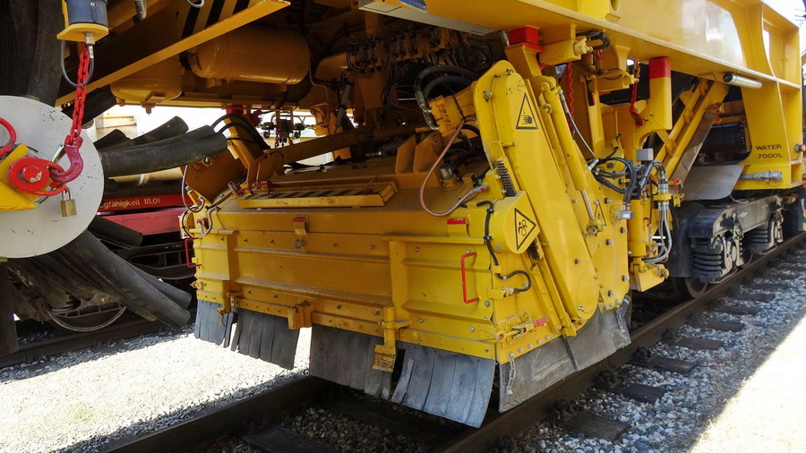 La solution est un nouveau concept qui entraîne la machine soit à l’aide d’un moteur diesel, soit d’un moteur électrique en utilisant l’énergie électrique disponible dans la caténaire. Ceci est valable aussi bien pour la circulation HLP que pour le travail. L’émission locale de CO² s’approche donc du zéro et nos clients auront la possibilité grâce aux mesures globales d’isolation acoustique de satisfaire aux conditions écologiques dans le cadre de la maintenance de l’infrastructure.