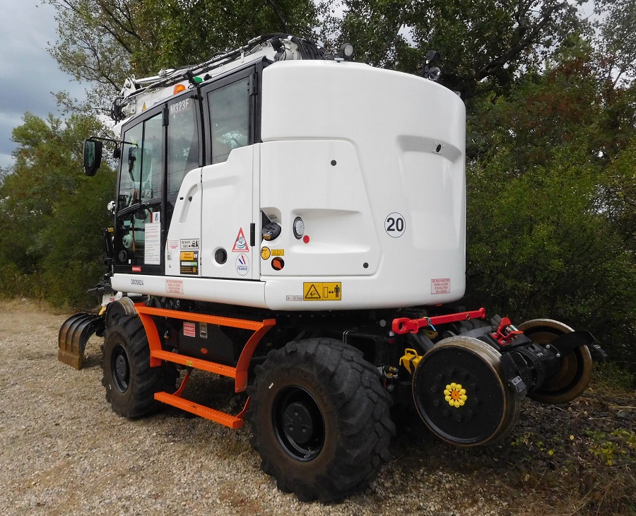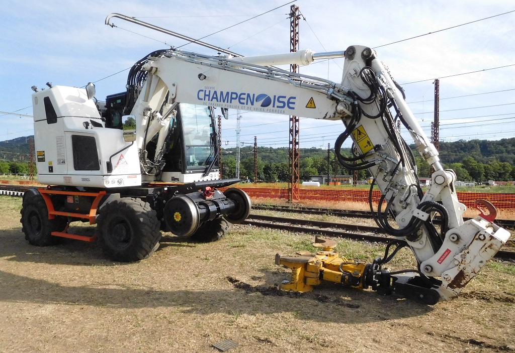 Revoici cette pelle à l'été 2023 pour un chantier RAV en gare d'Ambérieu-en-Bugey :