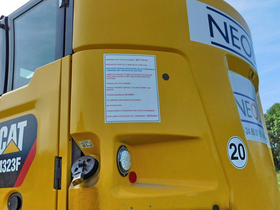 Voici une nouvelle Pelle Rail route CAT M323F Caterpillar n°RH300186 sortie en 2018 pour NEOLOC Agrément de travail MTP 18 195 - 28-05-2023 Saint Pierre des Corps le 13 octobre 2018