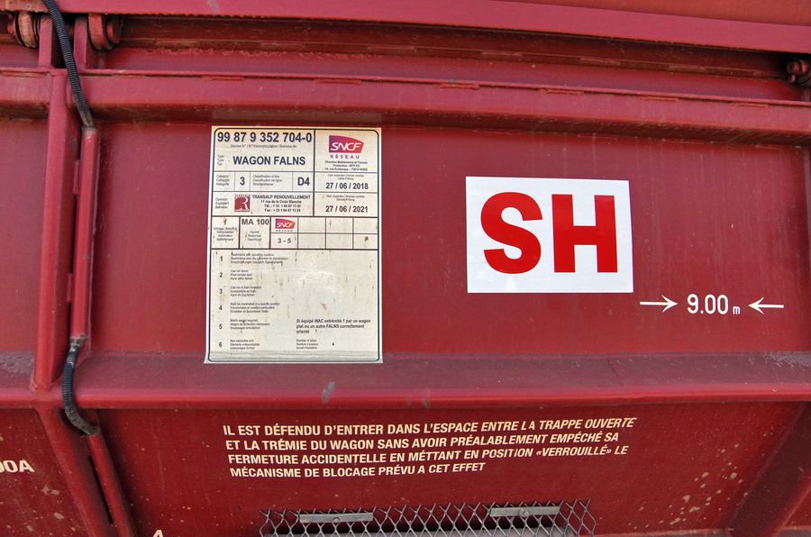 Le wagon trémie FALNS - 99 87 9 352 704-0 - TR n° 53 Photos de Gtr Lefèvre sur la base de travaux d'Amiens le 23 juillet 2019 pour le RVB Amiens Serqueux (ligne Amiens Rouen)