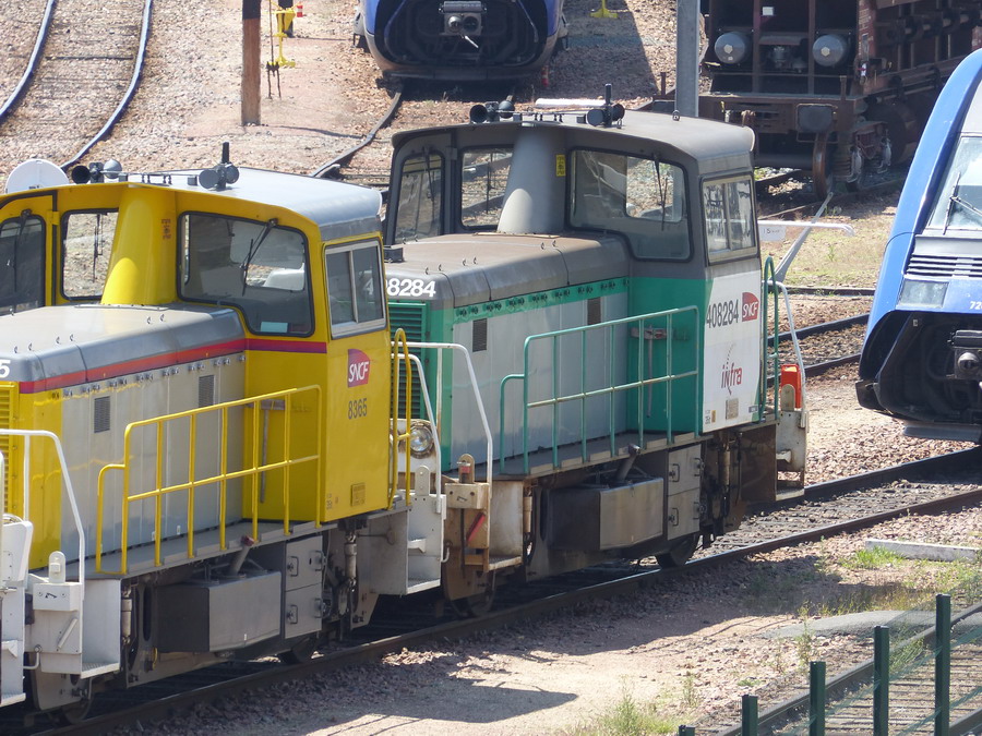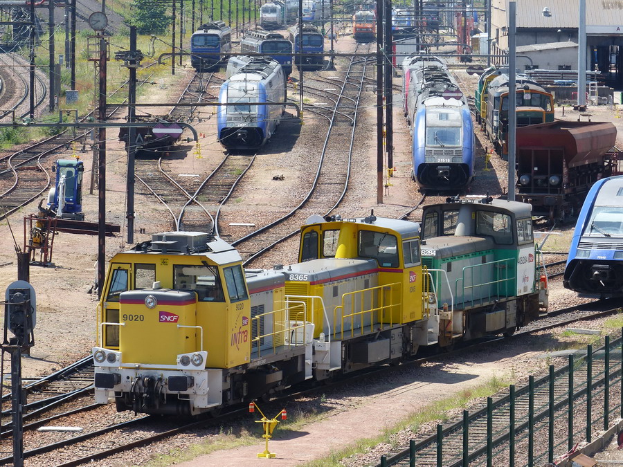 avec les Y 9020 et Y 8365 à sortie nord du dépôt de Saint Pierre des Corps le 09 septembre 2018