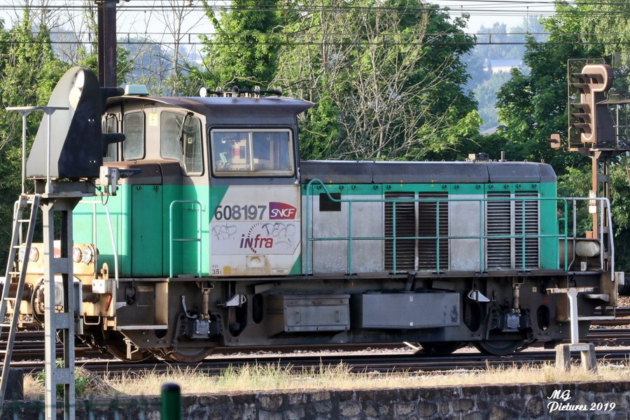 Le locomotracteur Y 608197 mis en service le 01-08-1983 en livrée Fret SNCF avec logo Infra