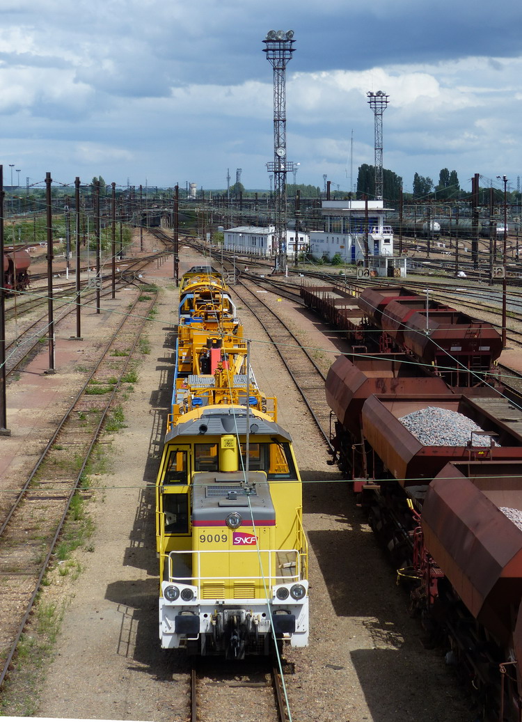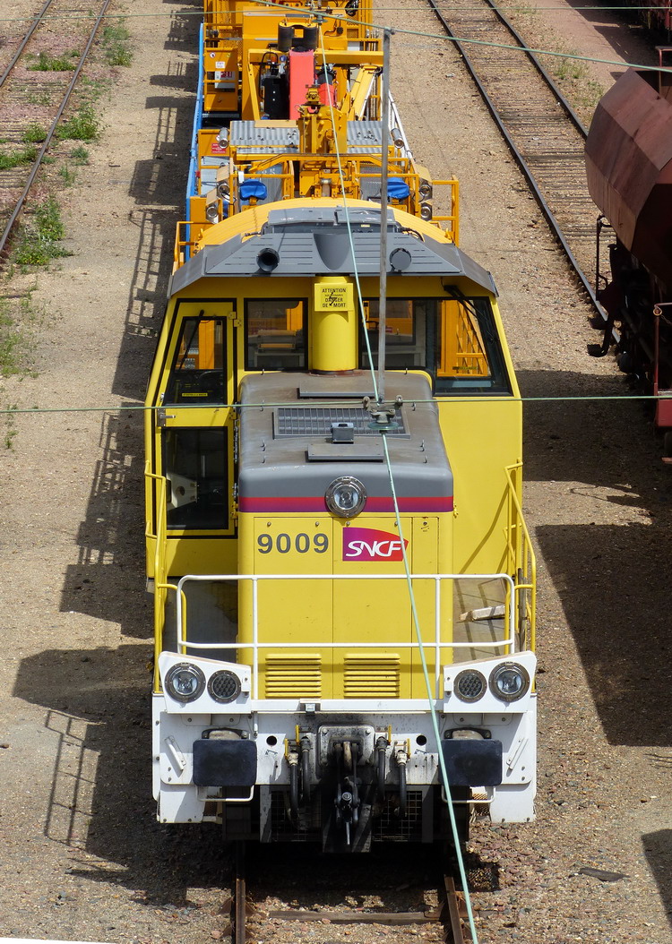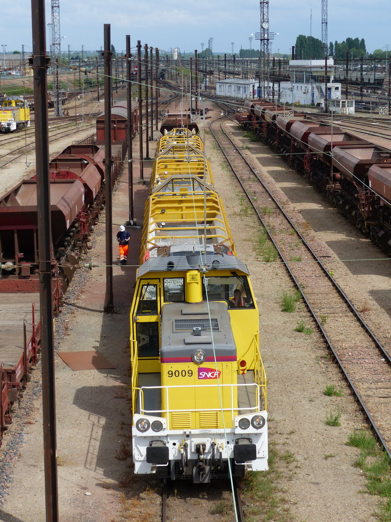 Voici le locotracteur Y 9009 en livrée Infra jaune avec la rame Nacelle PF2 le jeudi 06 mars 2014 à Saint Pierre des Corps