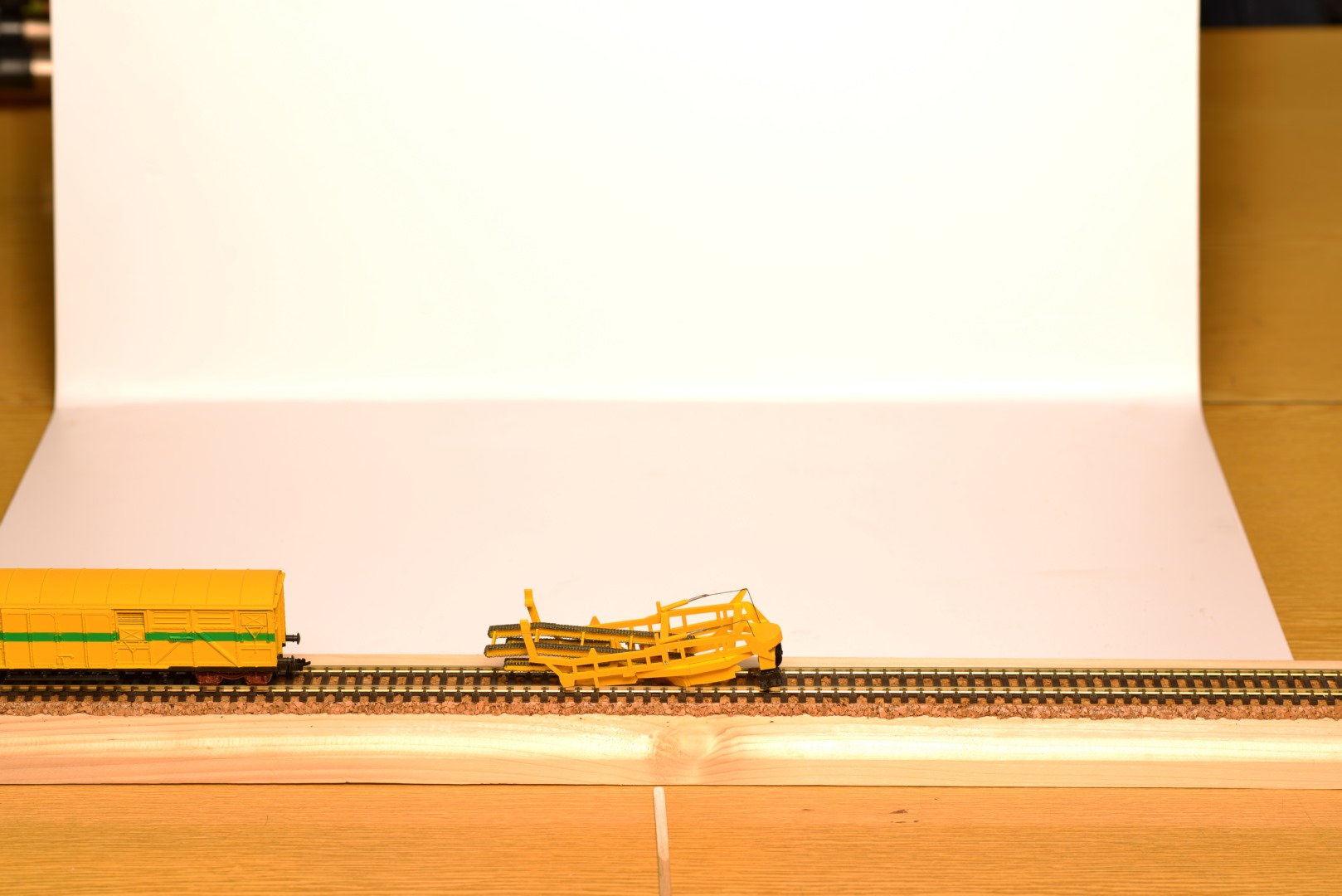 Wagon 1 - Wagon WEK (Wagon de tirofonnage) avec 2 PMP (Portique de manutention des palettes de traverses)