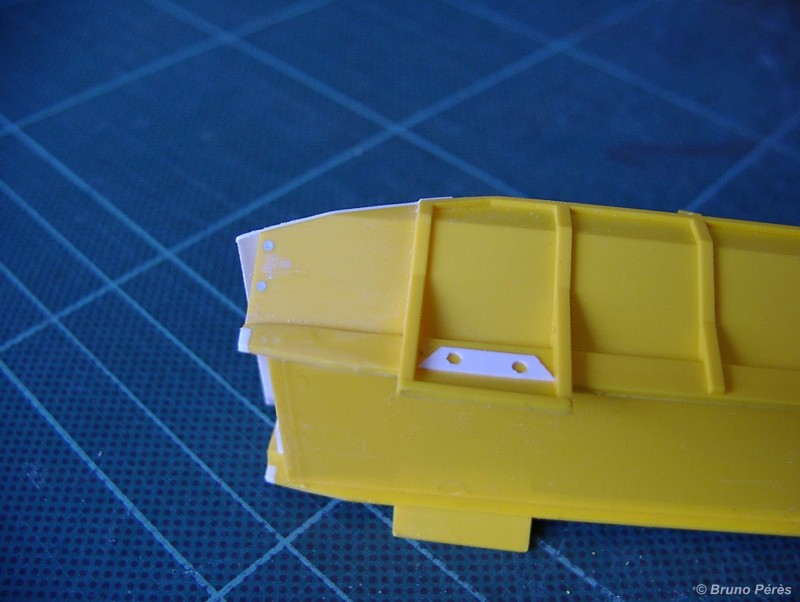 Collez un profilé Evergreen (0,25 x 1 x 4,5) sur la partie basse de la la pièce barrant horizontalement la trémie, en alignement du seul relief que vous aurez laissé.