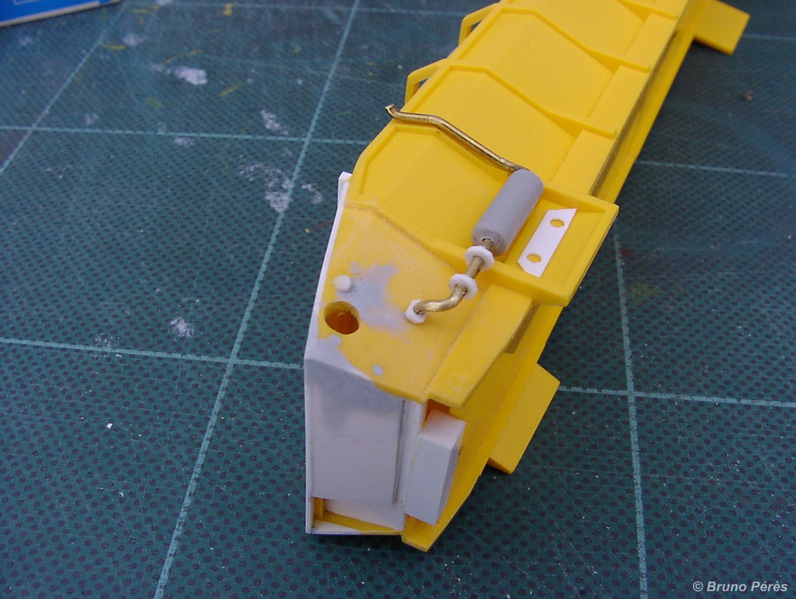 Bruno, es-tu certain de l'emplacement de l'échappement que B. Ciry n'a d'ailleurs pas installé sur ses kits?J'y ai fixé (pas encore collé une passerelle (laiton et maillechort soudés: tôle embossée et rambarde).Il y a pas mal de modifs à faire par rapport à l'article de B. Ciry dont des modifications de réf. pour les profilés.