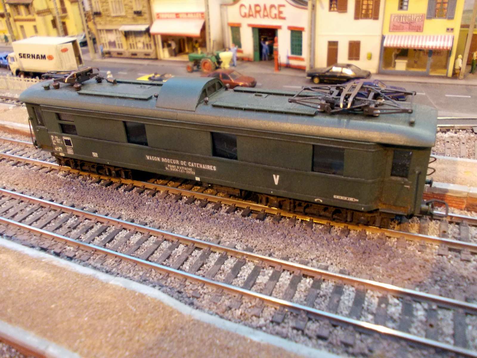 Voici un wagon rodeur de caténaires réalisé sur une base d'un fourgon ex DR Jouef raccourci.Qu'elle était son utilisation dans la réalité ? Si quelqu'un à des infos ! L'origine de ce wagon était un ancien fourgon chaudière.