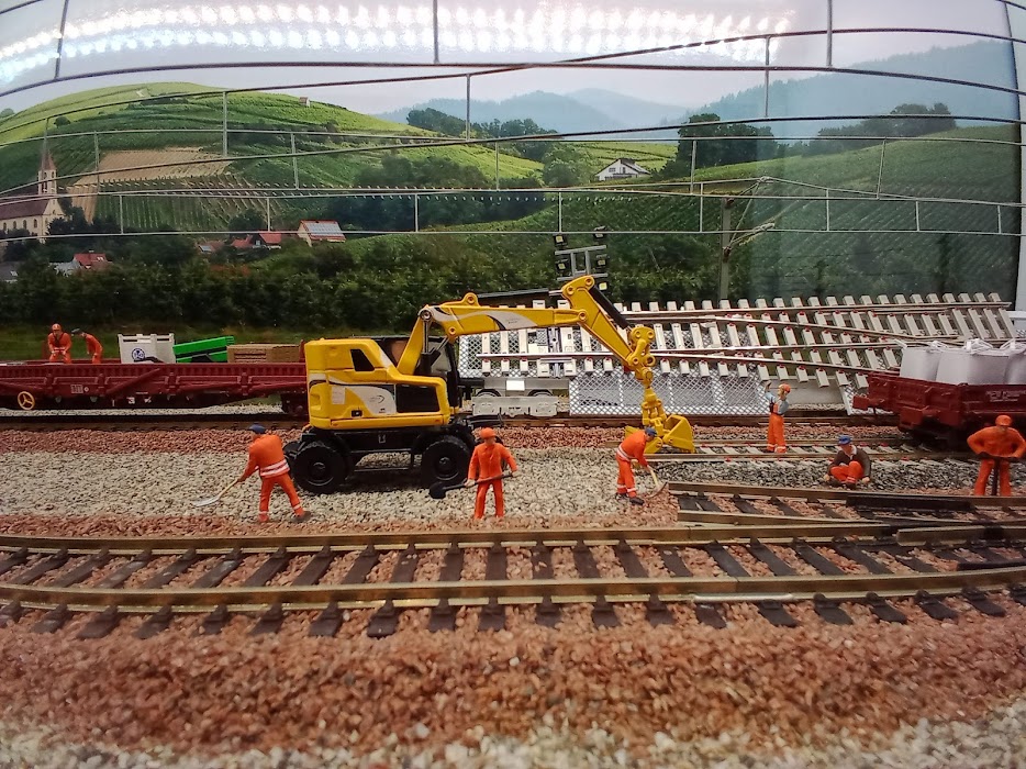 le diorama se trouve dans une vitrine qui surplombe les voie de circulation du réseau