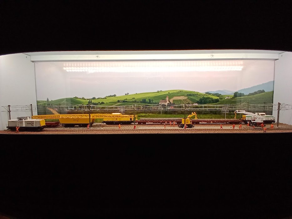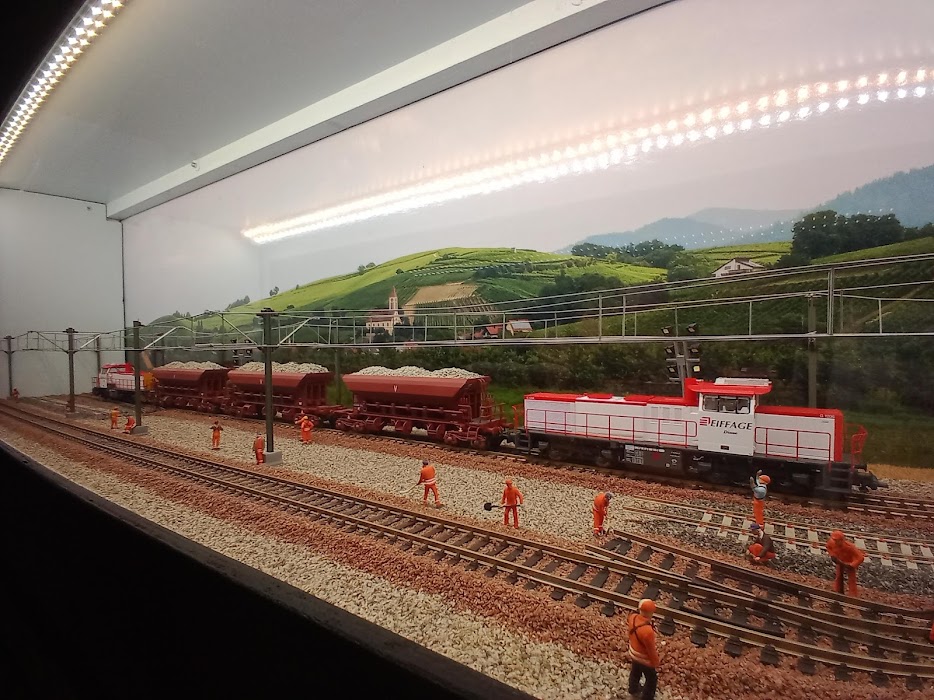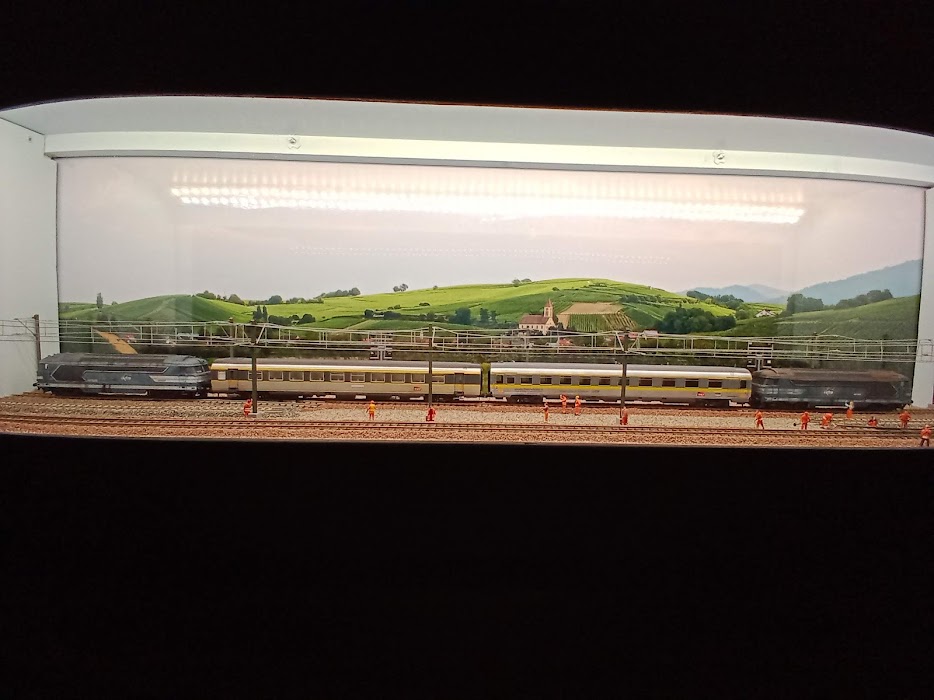 le diorama se trouve dans une vitrine qui surplombe les voie de circulation du réseau