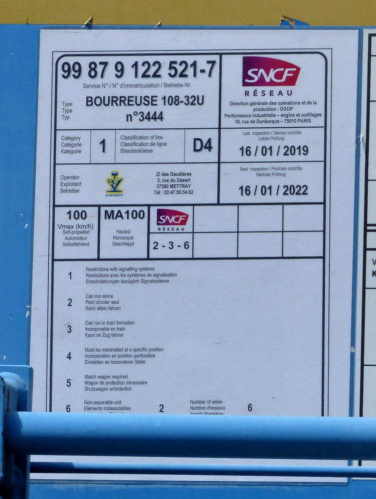 Tout en restant bleue, elle a perdu ses logos Vecchietti au profit de Colas Rail.
