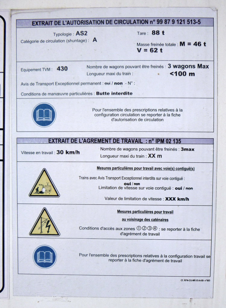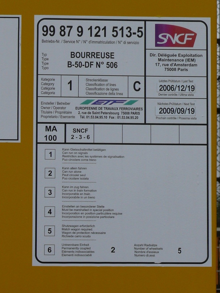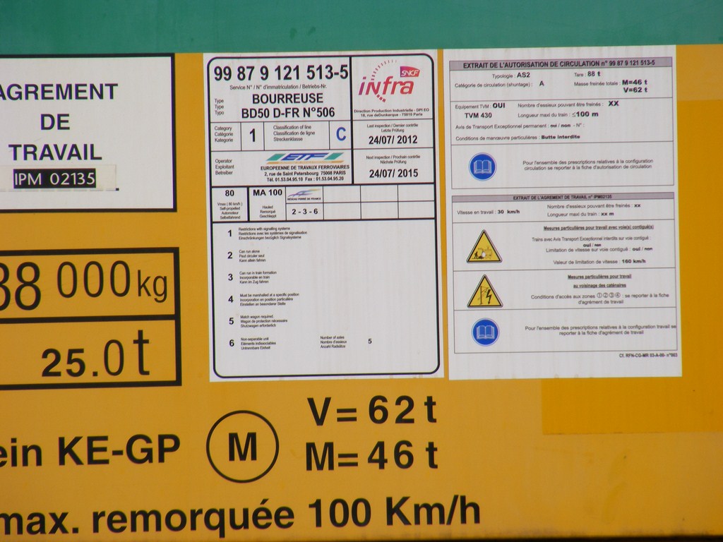 Matisa n°506 - 1992 ex Déhé Cogifer TF - dernier Agrément de travail IPM 02135 n° d'ETF 5200010