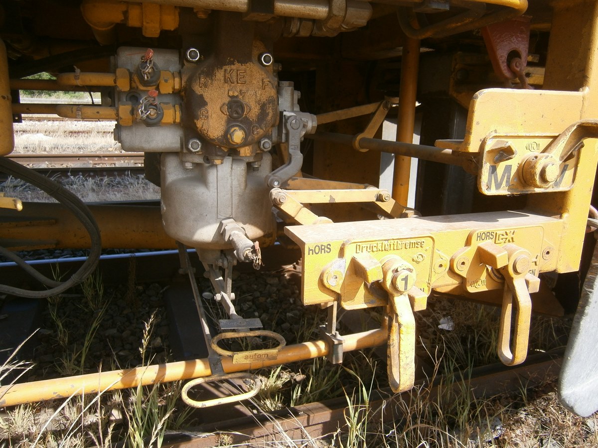 Voici une Bourreuse Combi 20 non identifiée - Point d'attache Elog Bretagne avec la voiture 80 87 979 3 305-9 Uas H55 0 SNCF-RN