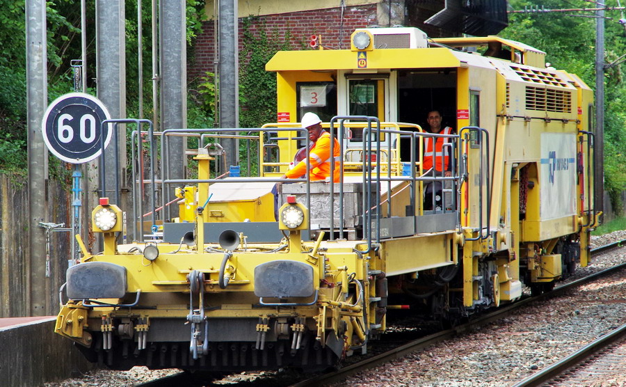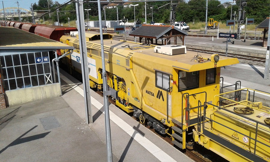 Photos de Gtr Lefèvre pour du bourrage après les travaux de remplacements des traverses en gare de Poix de Picardie (80)