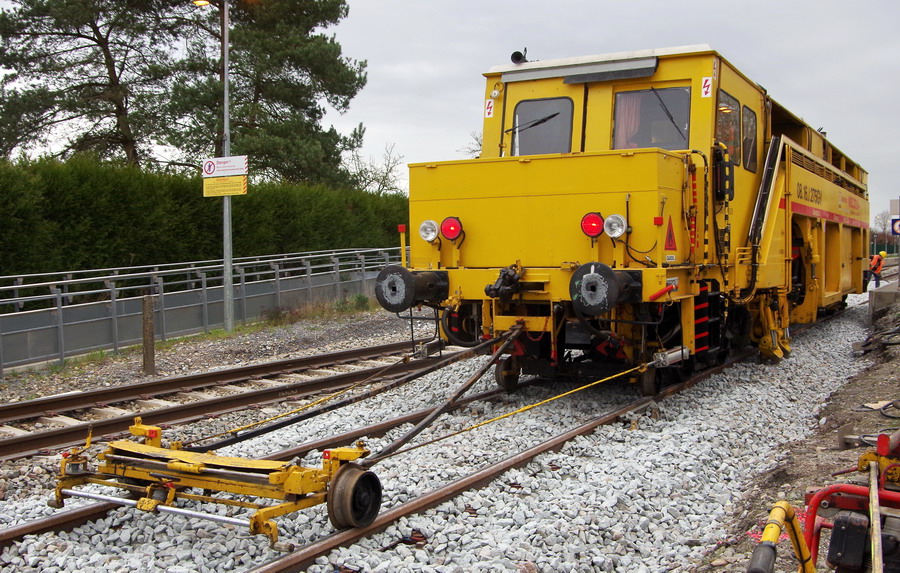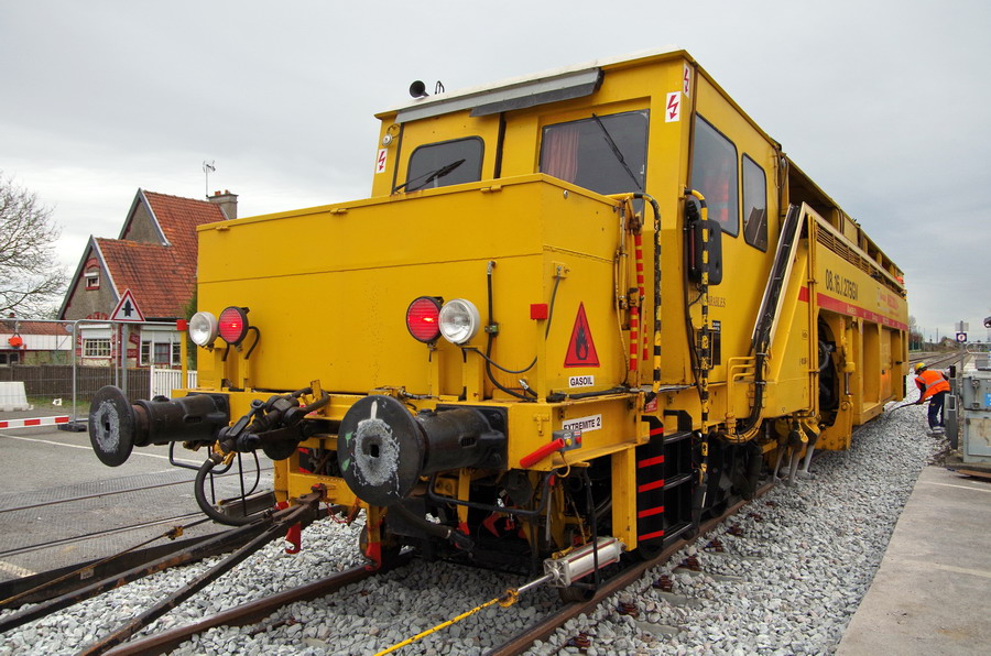 La voici en gare de Flavy-le-Martel en pleine action de bourrage le 10 avril 2018