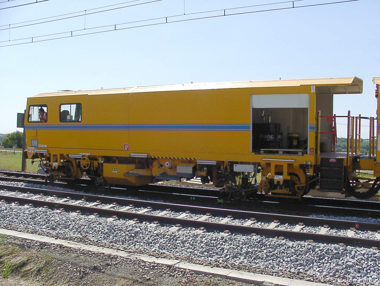 Il faut dire que cette bourreuse a tout d'une Vecchietti (livrée jaune à bande bleue, groupe de bourrage bleu) ... sauf logos et raison sociale.