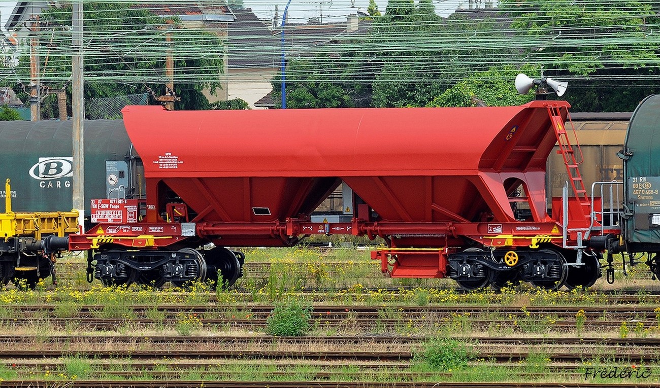 Des tels wagons sont typiquement des wagons TTX. Parceque ces equipements sont amovibles … on peut dire que que même ces wagons sans les "déversoirs" ne sont pas "étrange" ici.