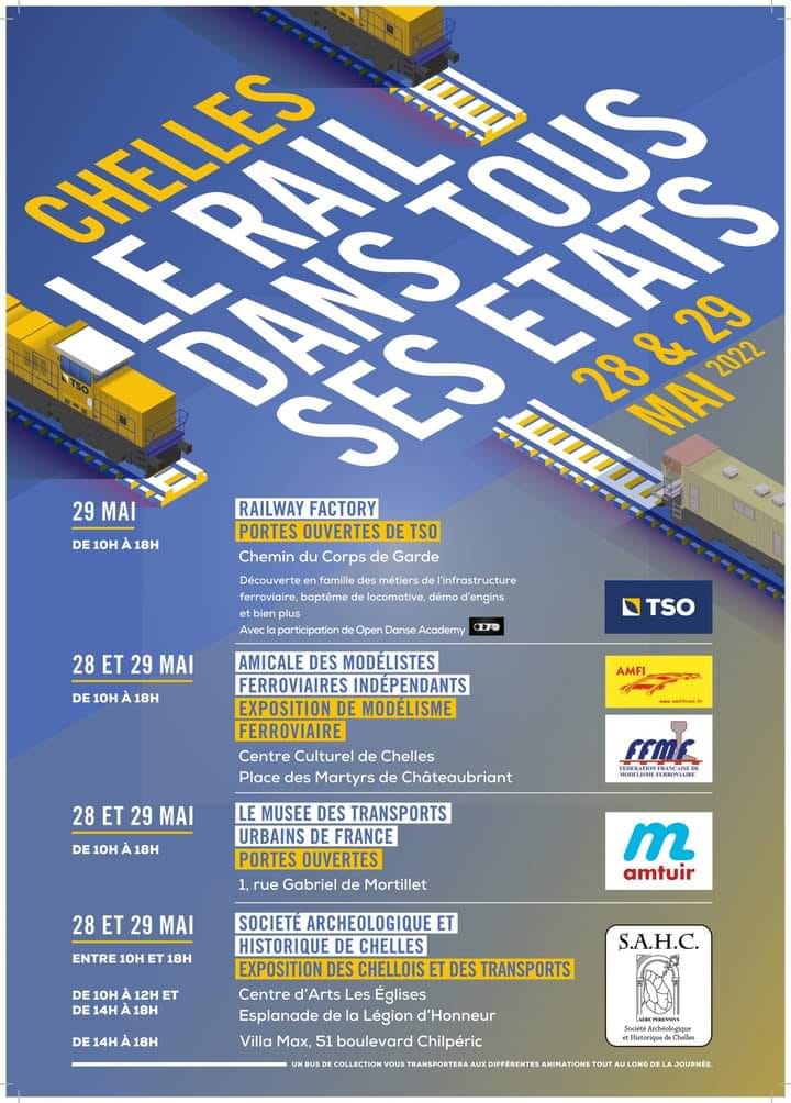 La 2ème édition de Le rail dans tous ses états aura lieu les 28 & 29 mai 2022 à Chelles en Seine et Marne.