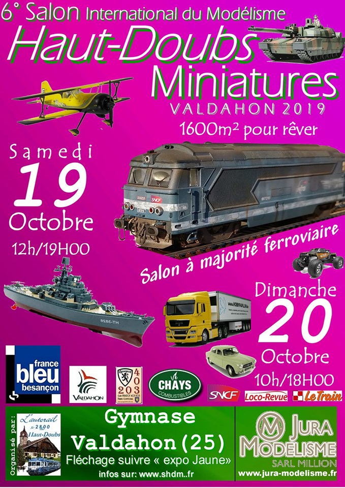 L'association "L'Autorail X2800 du Haut-Doubs" organise le 6ème Salon Haut-Doubs Miniatures qui se tiendra les 19 et 20 Octobre 2019 durant les vacances de Toussaint au gymnase du Valdahon (25)