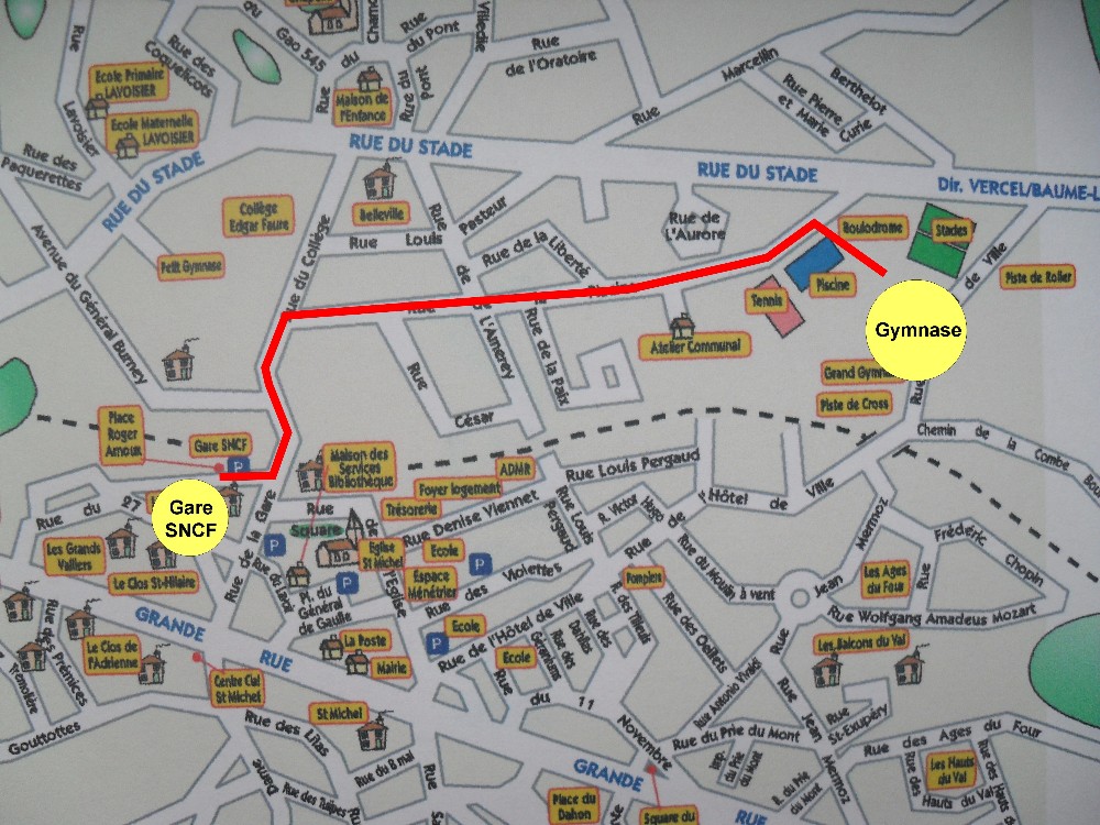 Je joint un plan d'accés au gymnase pour ceux qui ne connaisse pas Valdahon avec en prime le tracé depuis la gare. . .