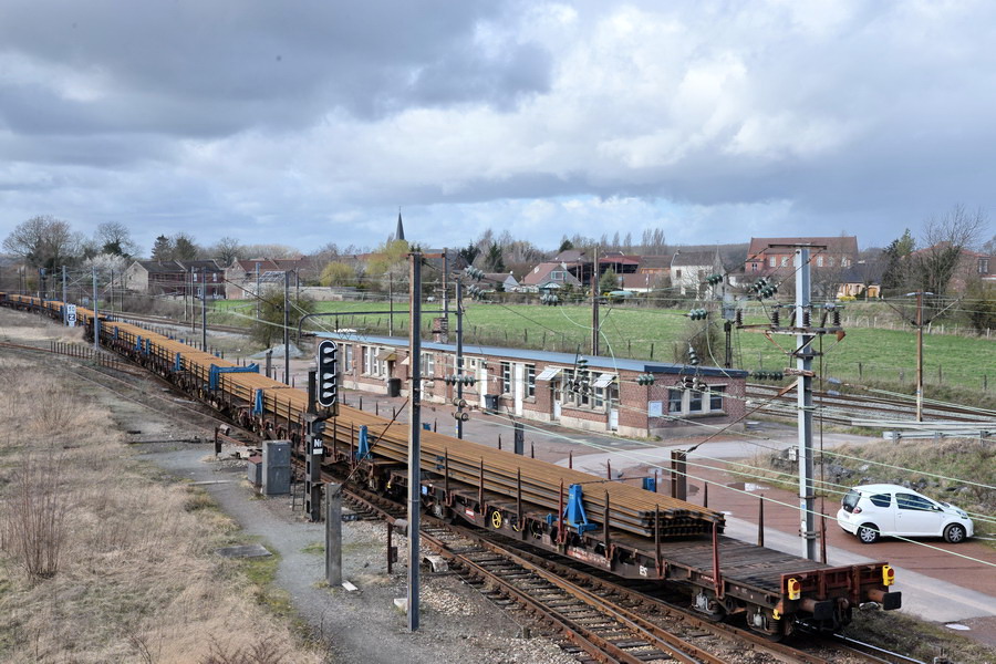 démarre de Somain le 05 mars 2019 avec un train de rails usagés ou pas , il y a trois jeux de coupons d'une centaine de mètres,