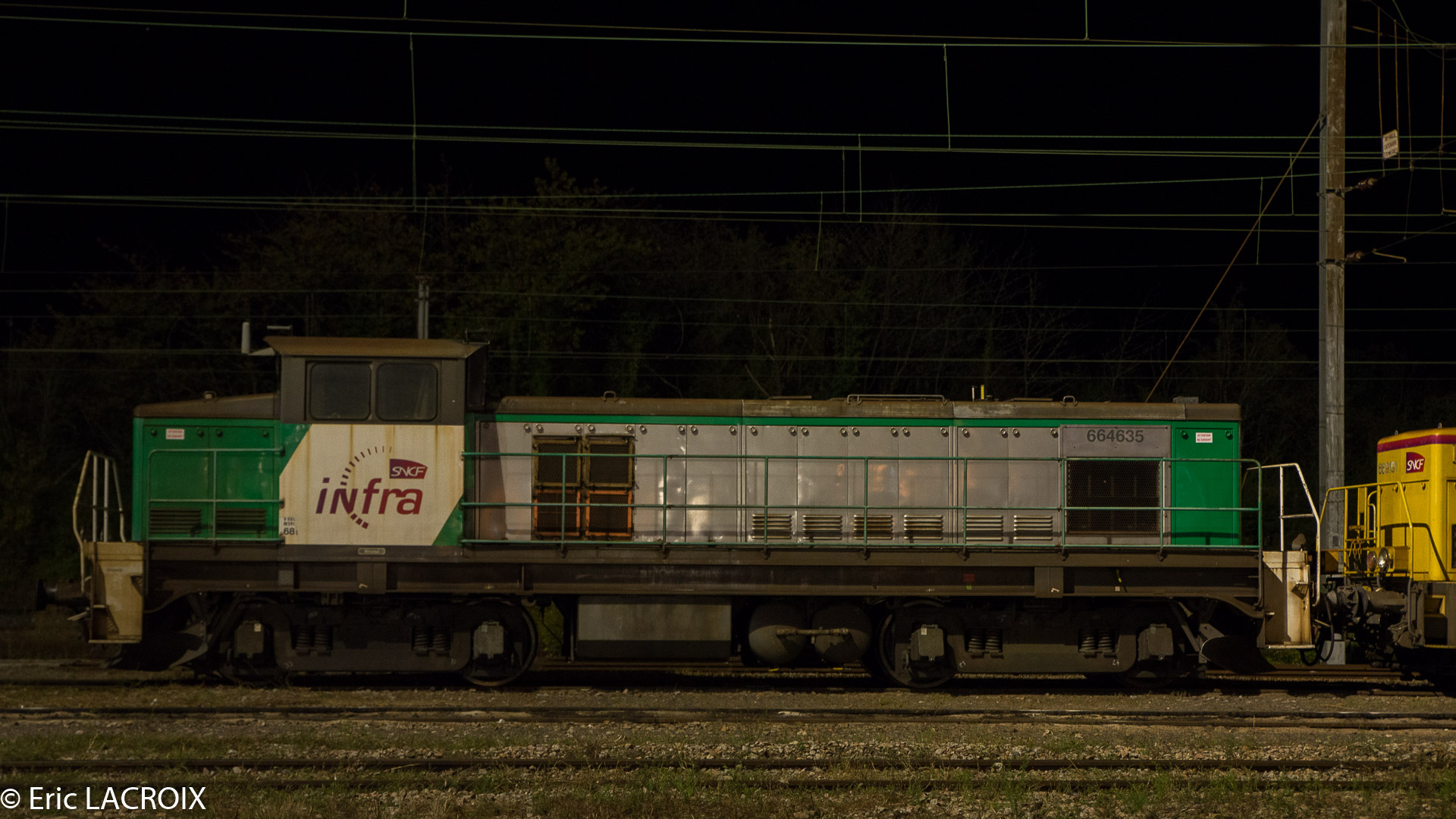 Voici la BB 664635 en livrée Fret SNCF avec logo Infra ex 63789 mise en service le 14-09-1961