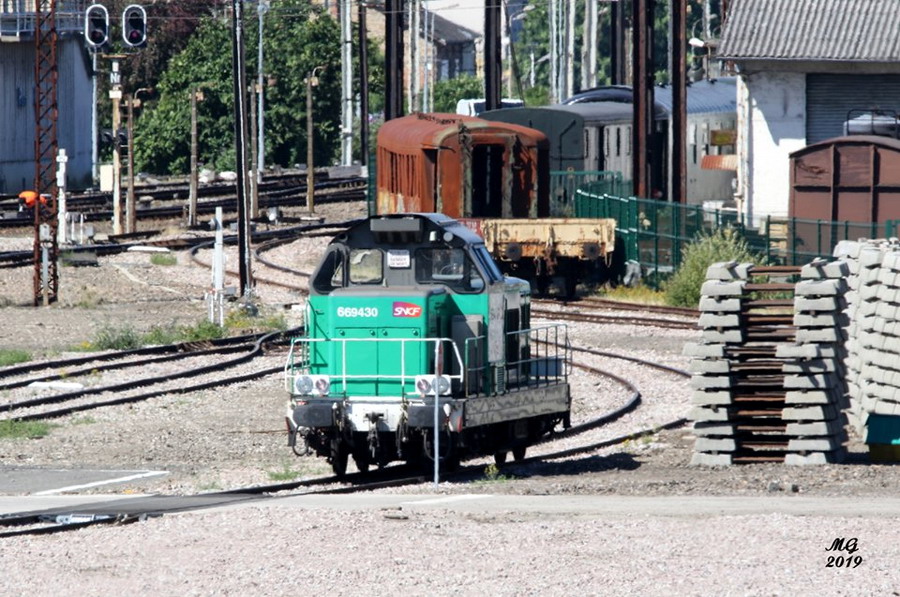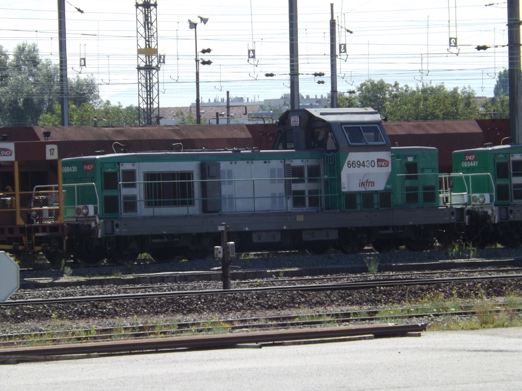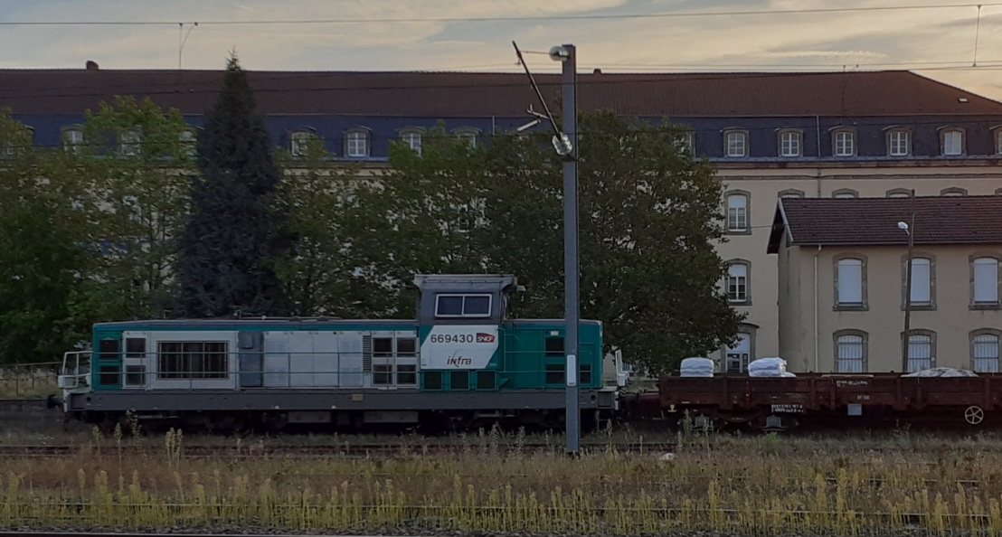 Voici la 669430 Infra avec le logo en livrée Fret (ex 66430 mise en service le 03-04-1969) en queue de TM passage par la gare de SPDC pour