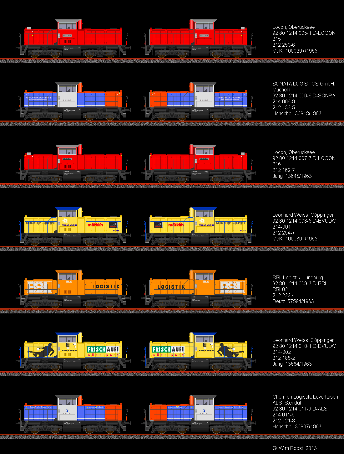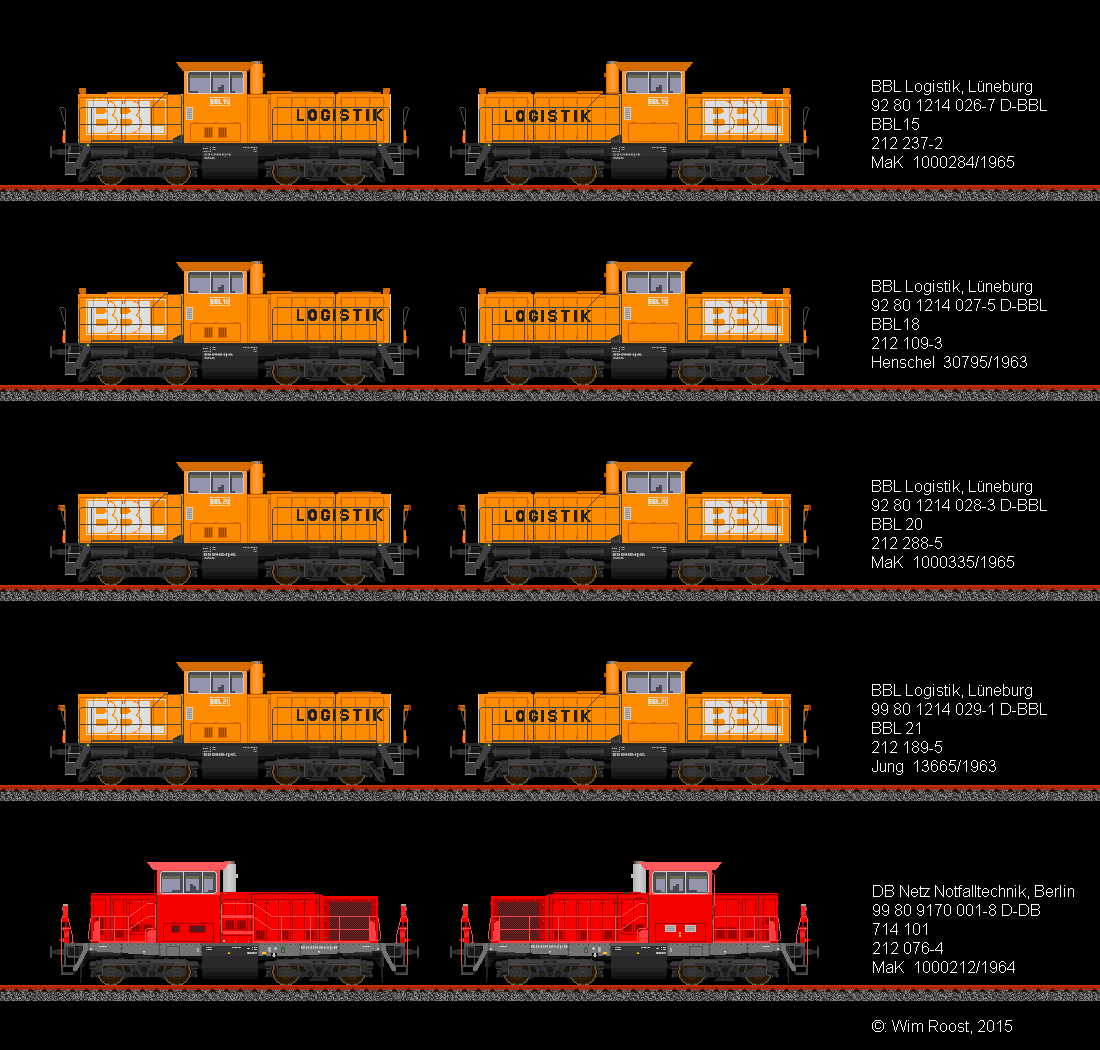première la seule 211 transformé par Henschel et les 8 211 transformé par OnRail/MaK (Regiolok DH1004). Et après ça les 212 transformé de Alstom Stendal/Gmeinder Mossbach (214)