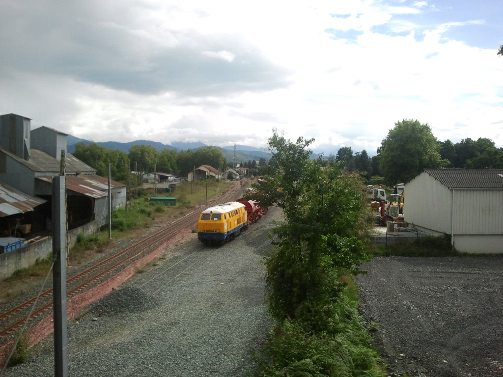 (Présente dans le cadre de la reconstruction de Oloron-Bedous - voie en cours de pose sur qq km au départ d'Oloron, mais jusqu'à Bedous, en de nombreux endroits, la plateforme est encore loin d'être prête. Sont aussi présentes sur ce chantier les ex-V 100 [br 211] 182.505 et 572).