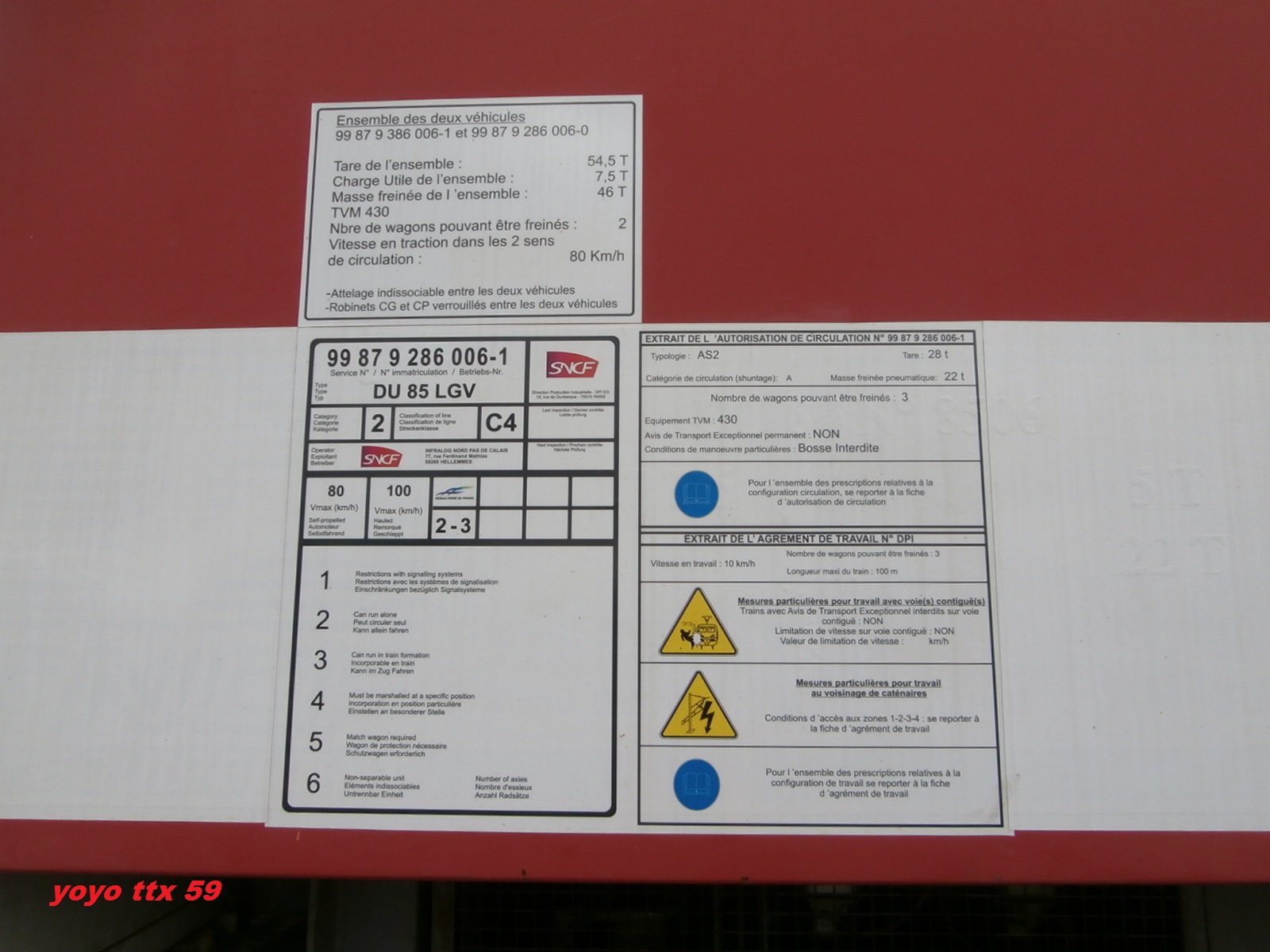 99 87 9 286 006-1 DU 85 LGV / 99 87 9 386 006-0 WPV 85 LGV