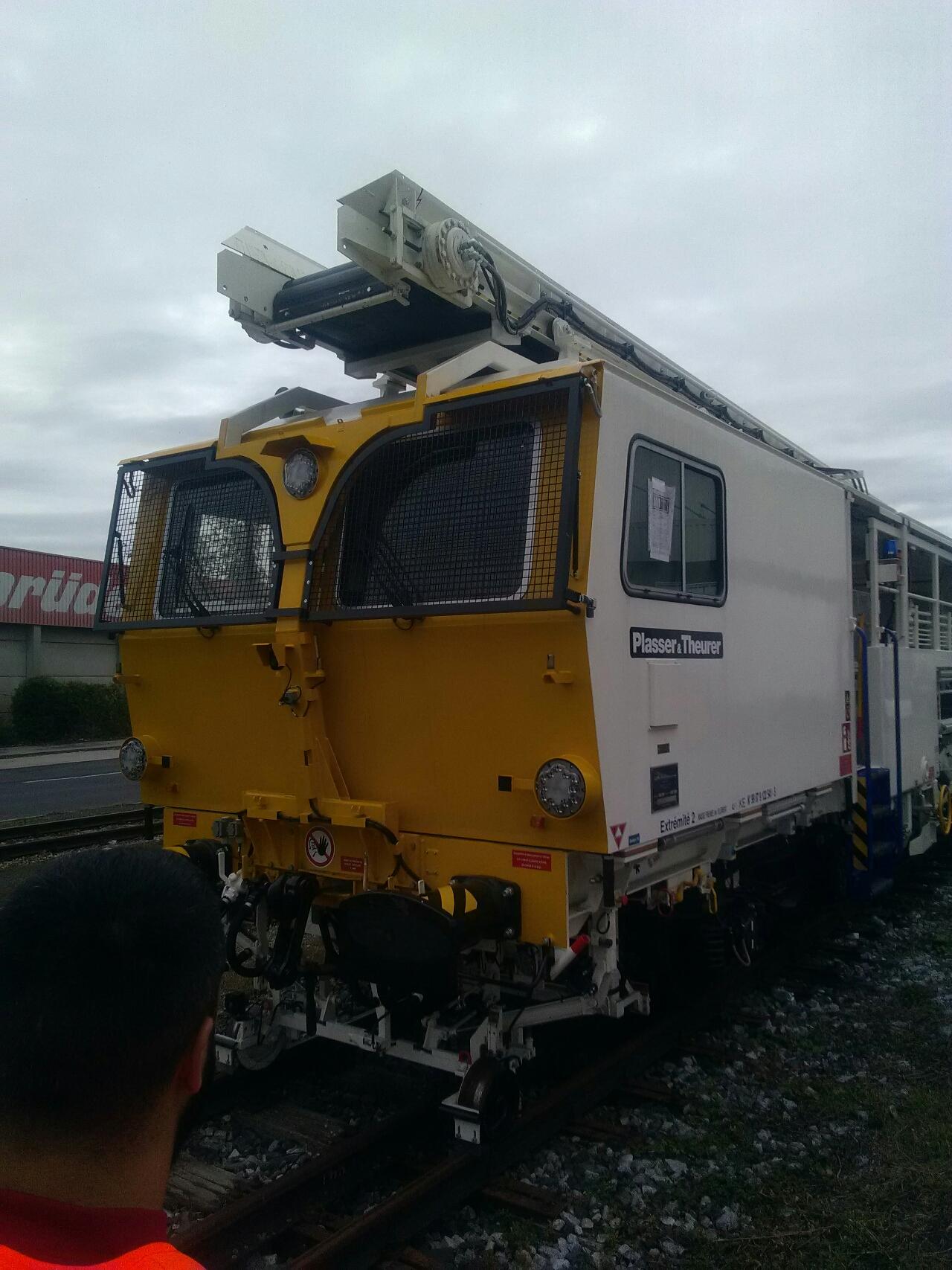 Cette bourreuse appartenant à Enorail travaillait cette nuit sur le RVB Portet-sur-Garonne - Boussens (31). Je n'ai malheureusement pas pu lire son immatriculation :spamafote: