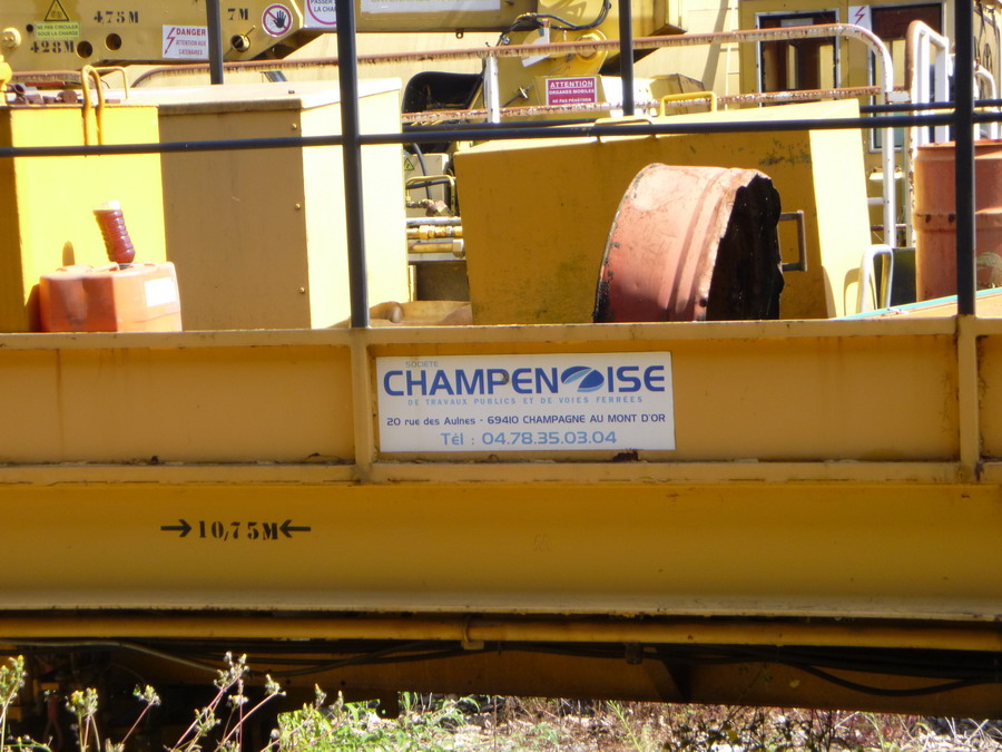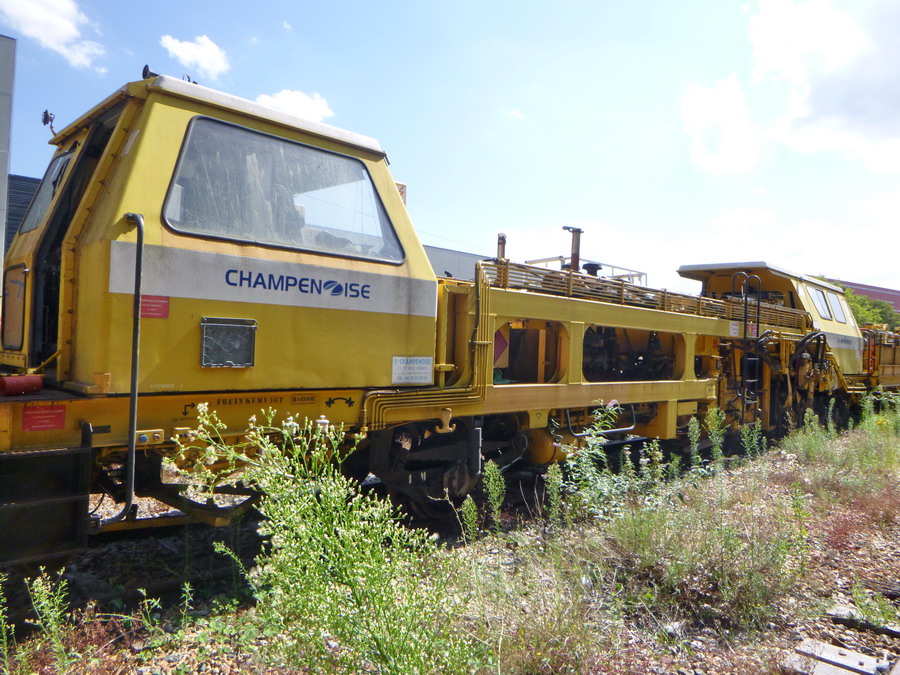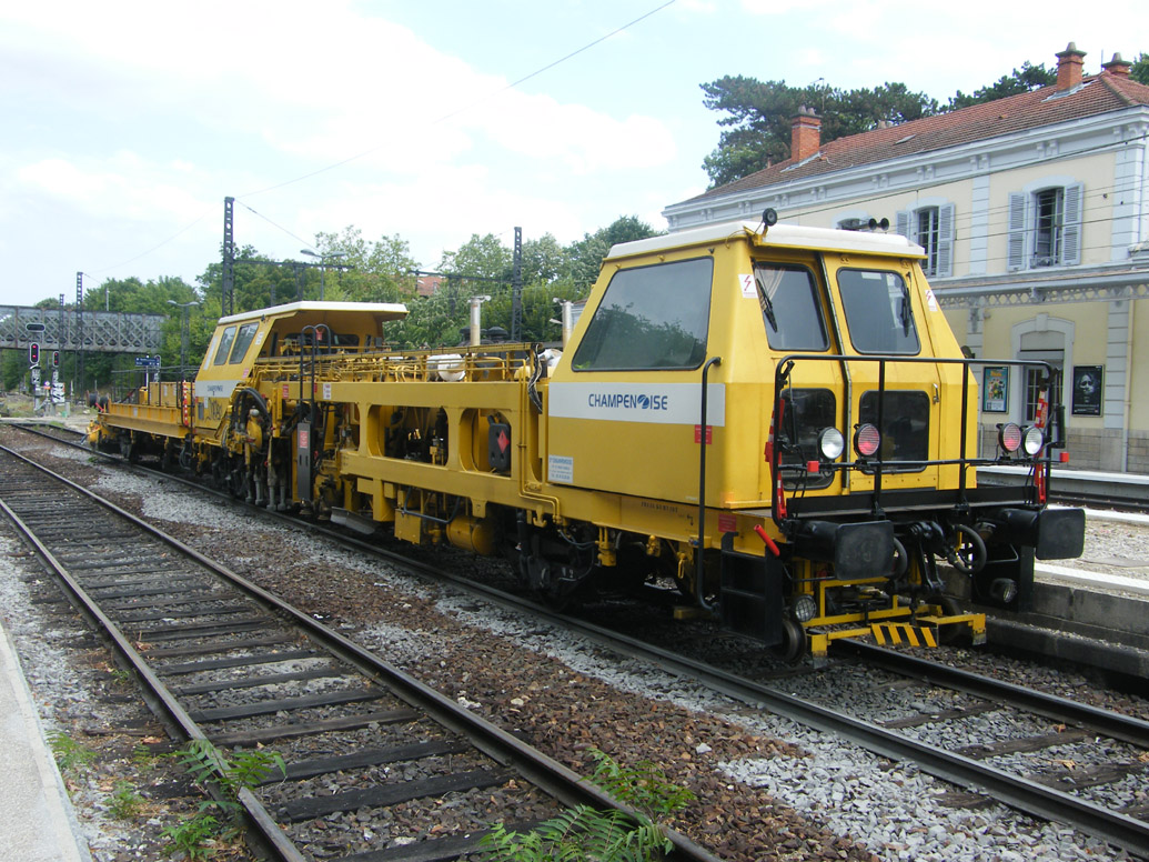 Dans le cadre de la rénovation, des lignes de l'Ouest Lyonnais, pour le futur tram - train, la bourreuse de Champenoise de VF stationne en gare de Tassin