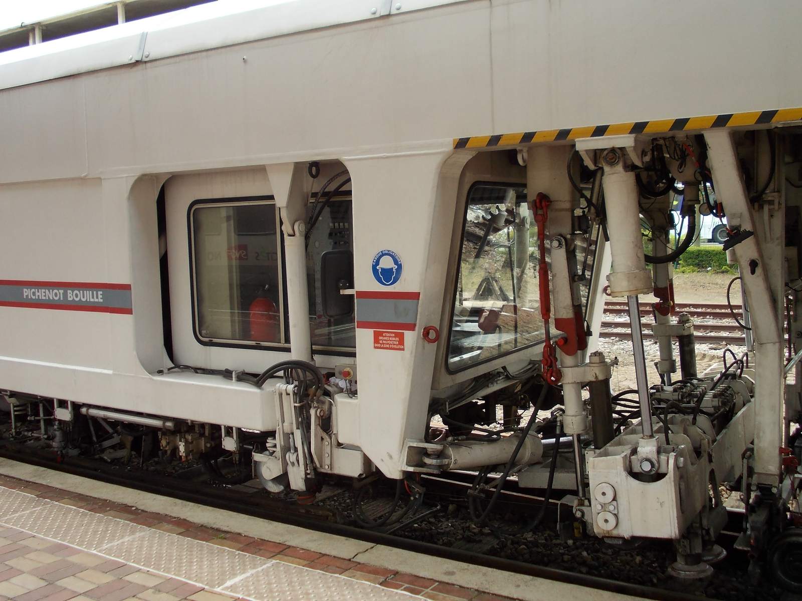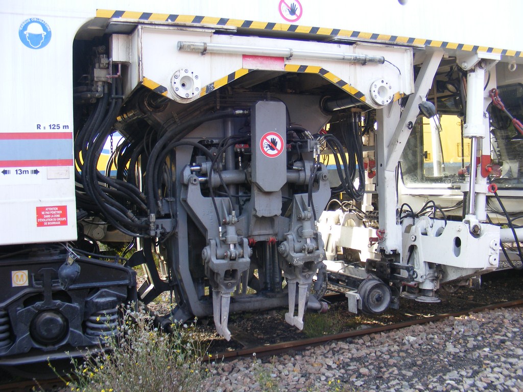 Il s'agit d'une bourreuse d'appareil Framafer 108 475 S de l'entreprise Pichenot Bouillé.