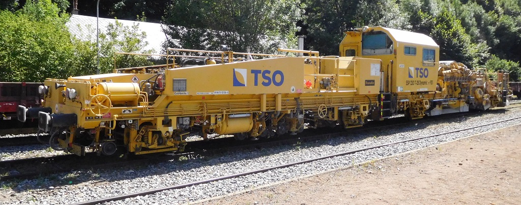 On la retrouve stationnée en gare de Vic-sur-Cère (15) dans le cadre des travaux du CPER Aurillac-Arvant en Juillet 2022 :