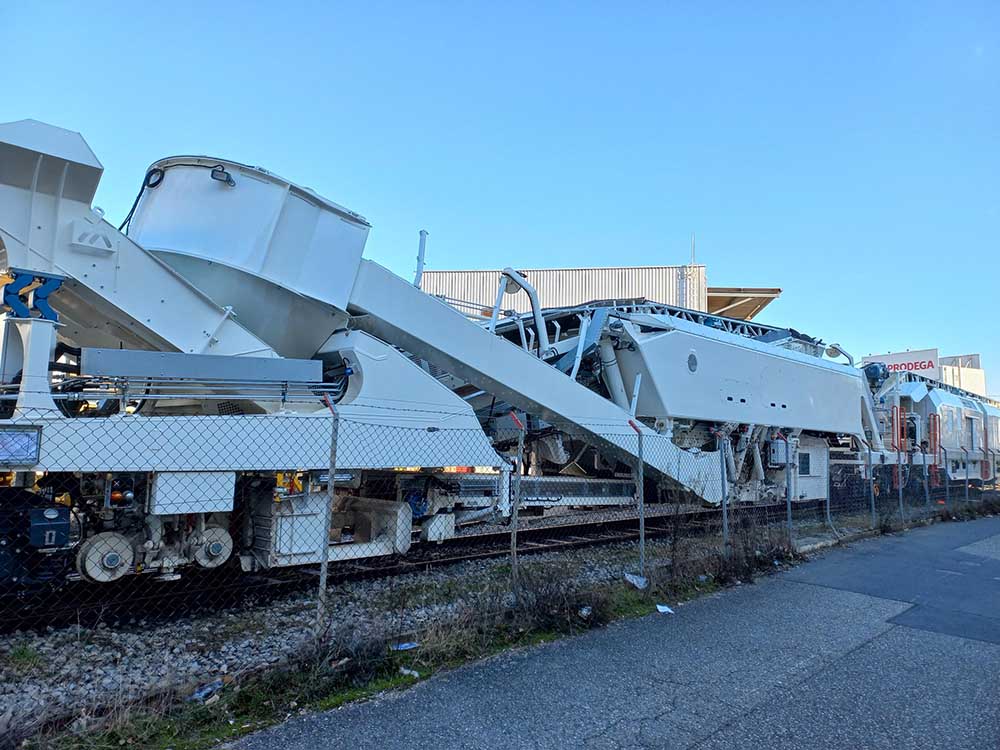 CGF, il y a 2 cabines, l'alimentation, la réserve de carburant et la génératrice électrique se trouvant derrière la chaîne de dégarnissage par rapport au sens de marche. Elle ne possède qu'un seul crible, a priori comme celle d'ETF.