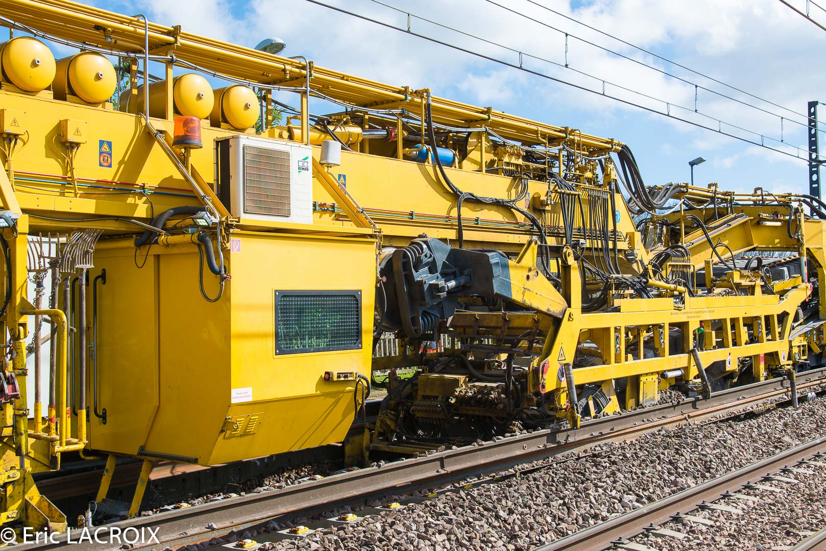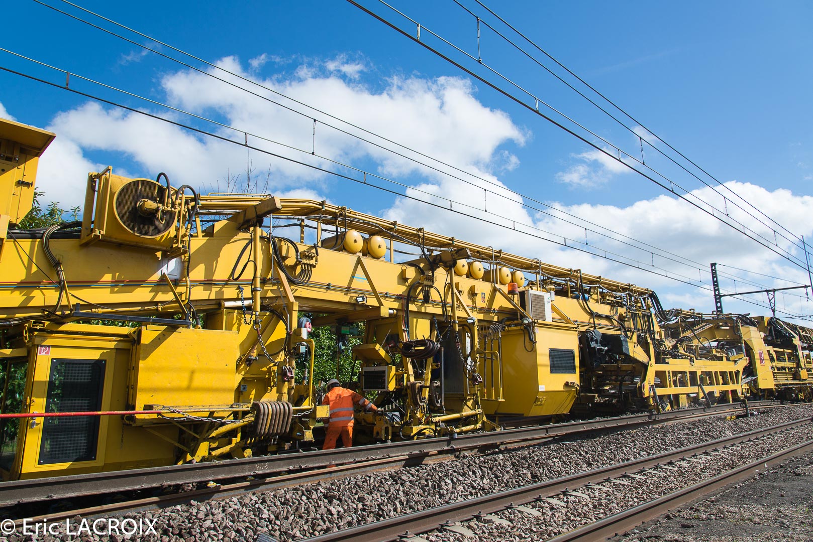 Train de renouvellement P95 MATISA Transalp Renouvellement à Villeneuve la Guyard le 22 mars 2017.