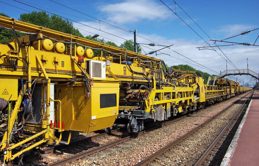Train de renouvellement P95 MATISA Transalp Renouvellement à Villeneuve la Guyard le 22 mars 2017.