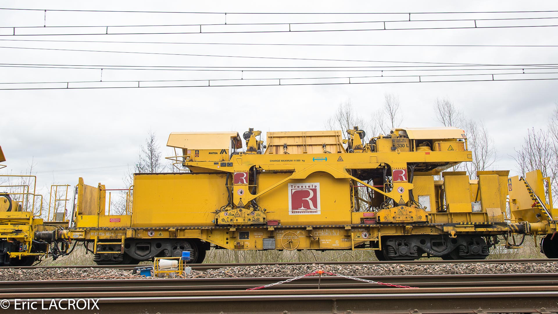 Train de renouvellement P95 MATISA Transalp Renouvellement à Villeneuve la Guyard le 20 mars 2017.