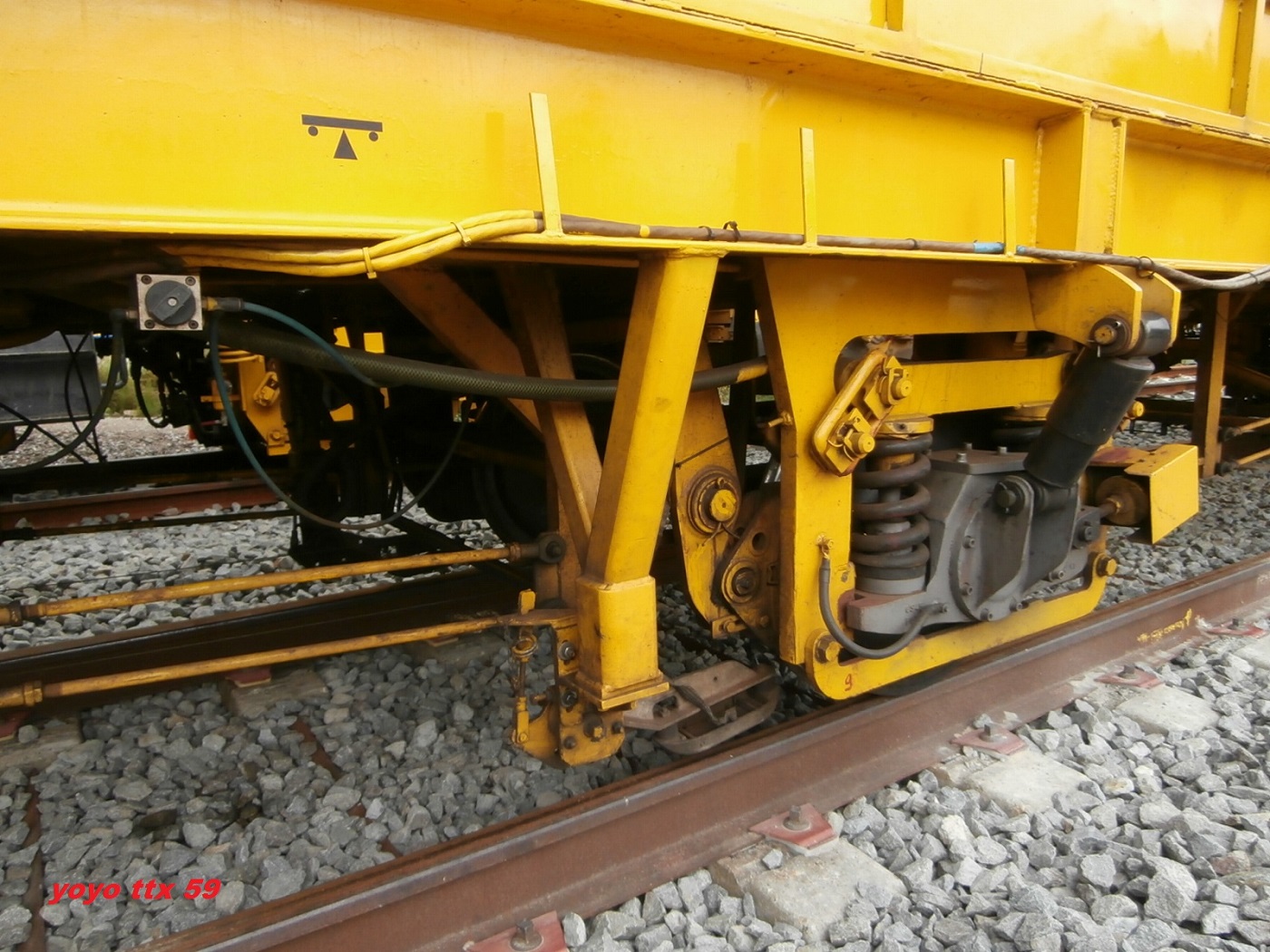 Voici maintenant après le dessus du wagon , quelques photos de détails du dessous de celui ci .Toujours a Gravelines le 17/08/2014 sur le chantier de la ligne Dunkerque / Calais :Et voila .