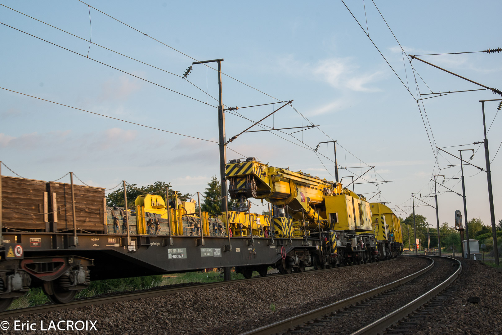 26195 en tête de la grue KIROW passe à Chalindrey en direction de Dijon en juin 2018.