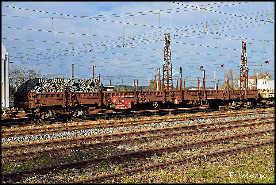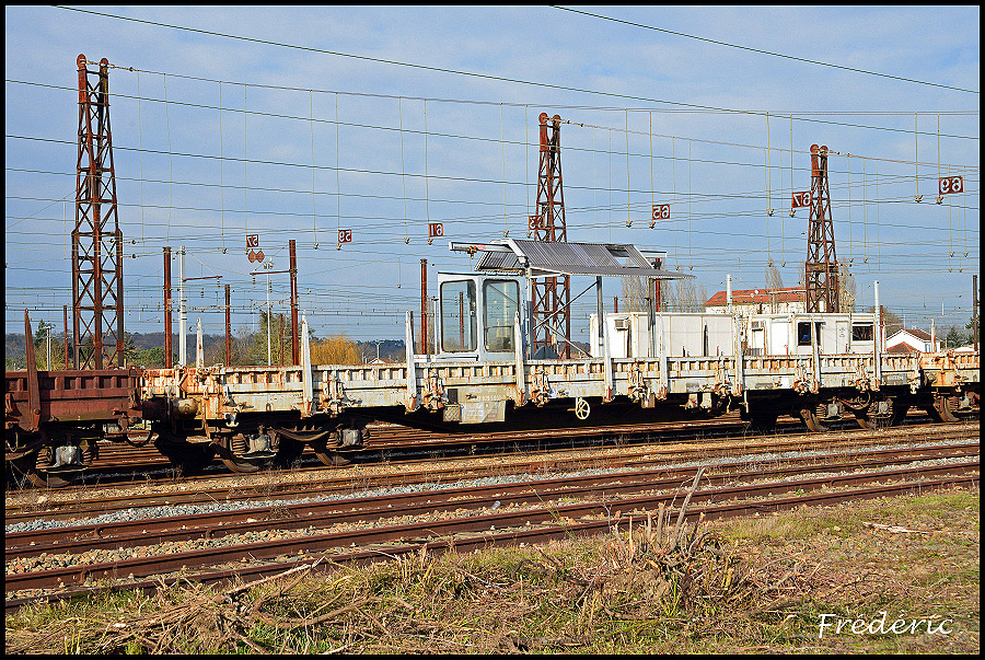 ... et une photo complémentaire de ce wagon qui appartient à l'EMS (Ensemble Mobile de Signalisation) de Limoges. Ce wagon sert effectivement pour la mise en place de câbles de signalisation provisoire (et/ou définitive ?). Il est notamment accompagné d'un autre wagon porte tourets, ainsi que de plats chargés d'armoires électrique de chantiers, de caisses à piles de chantiers, de signaux de chantiers.