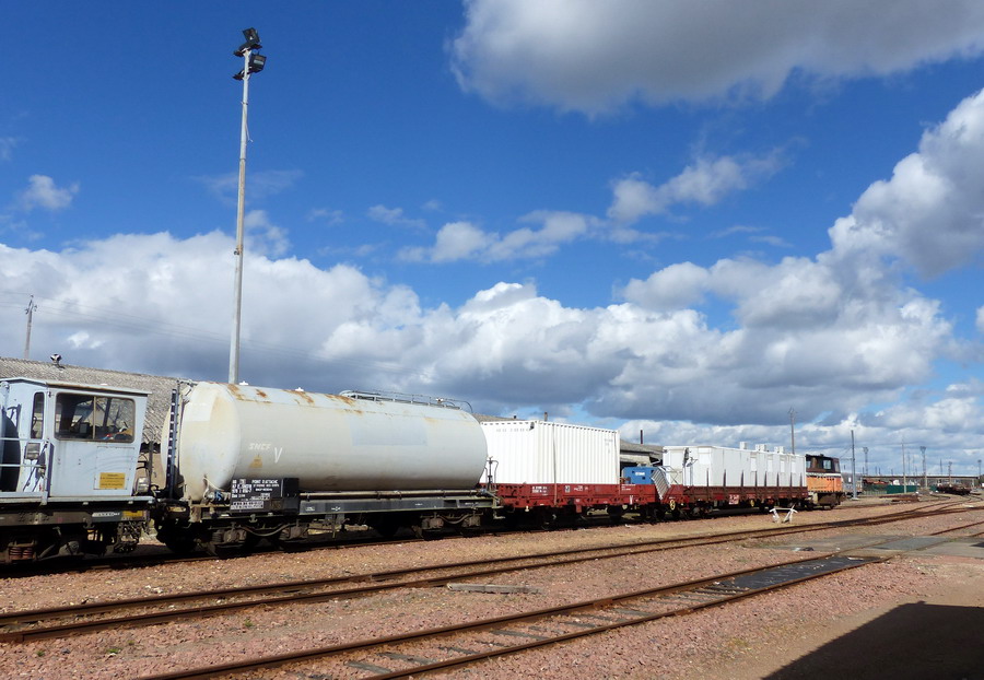 On retrouve le wagon citerne entre la Y 8265 Infra en livrée Fret et le wagon 80 87 979 8 835-5 Uas W85 6 SNCF-TR et le Y 9014