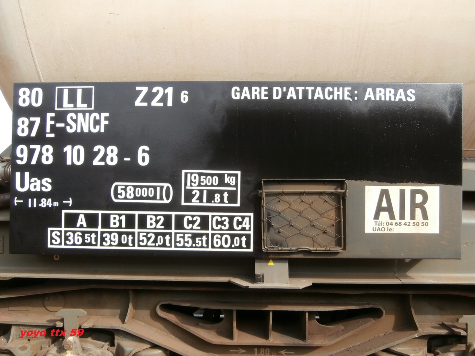 wagon citerne 80 87 978 1 028-6 Uas Z21 6 - F-SNCF-LL Point d'attache Arras
