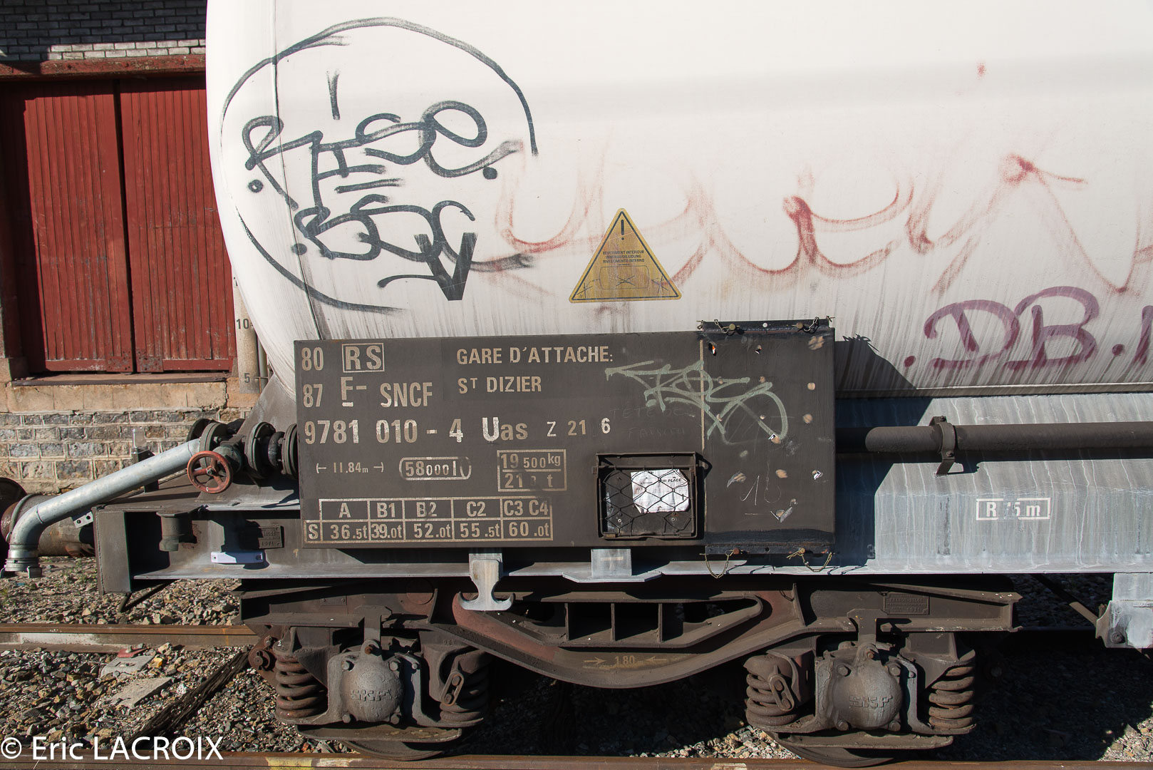 Voici le wagon citerne à boggies 80 87 978 1 010-4 Uas Z 21 6 - F SNCF-RS gare d'attache St Dizier