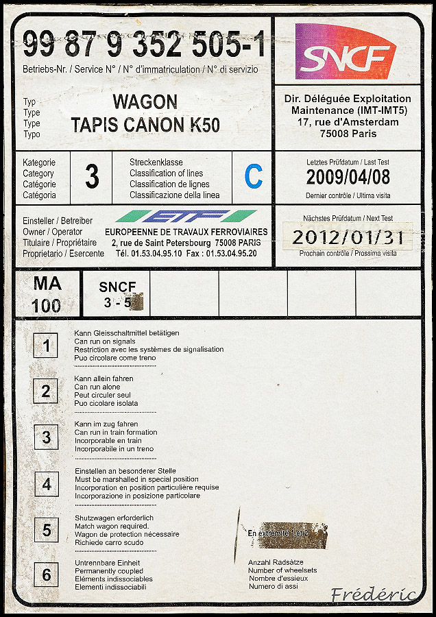Patrick, si tu as l'occasion de revoir ces wagons, ou d'autres, jette un œil sur les longerons car il y a parfois l'ancien agrément encore riveté, comme le 99 87 9 352 505-1 par exemple (ex RS0 ATA 0713).