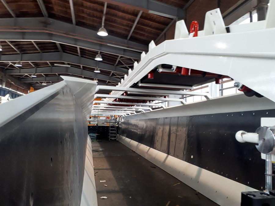 wagons pour convoyer, stocker et décharger jusqu’à 68 m³ de matériau, avec convoyeur de transfert orientable.
