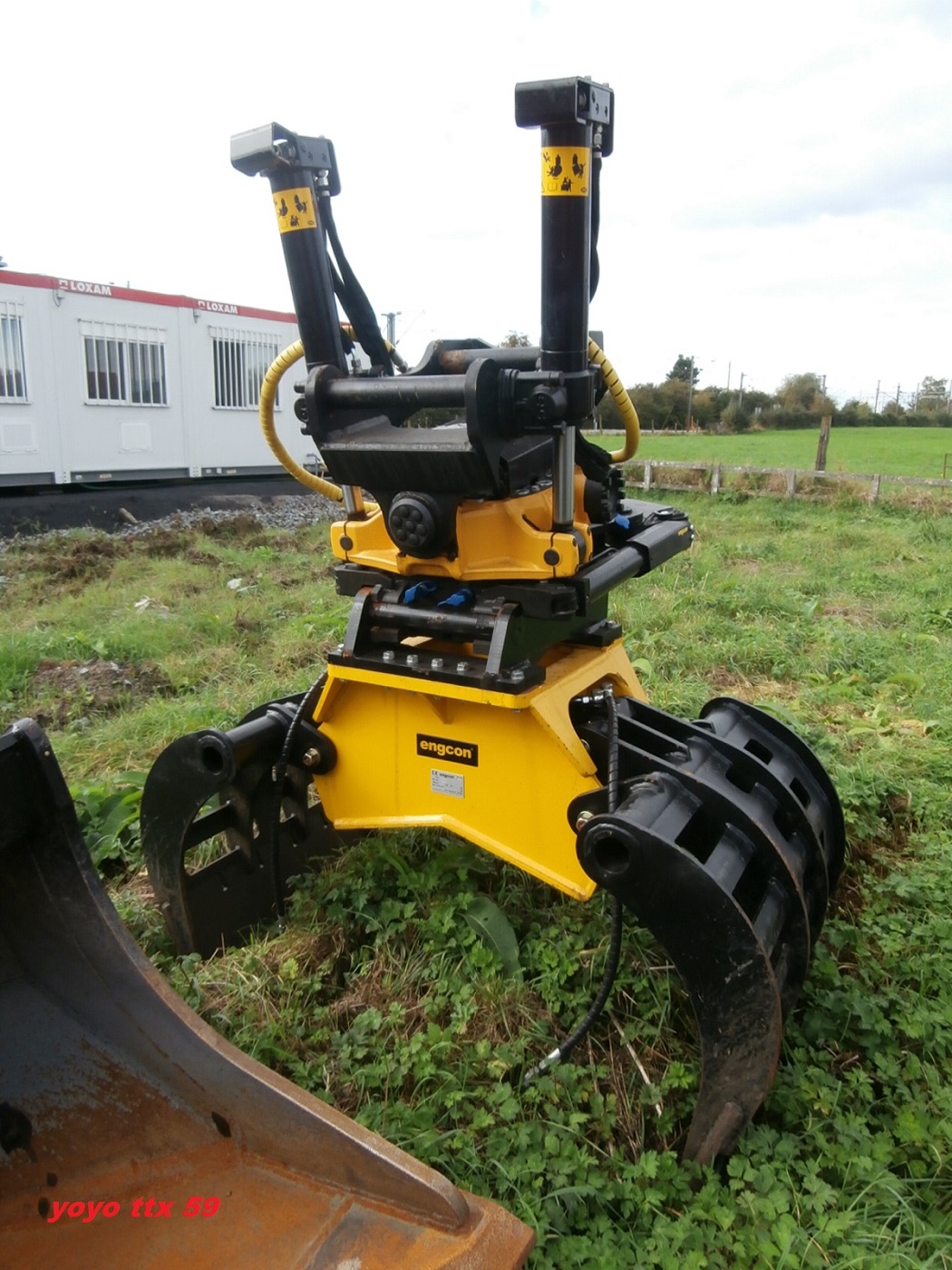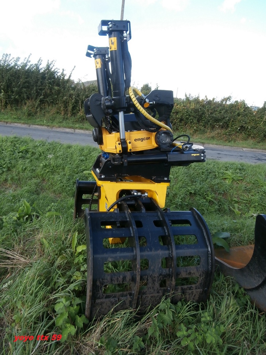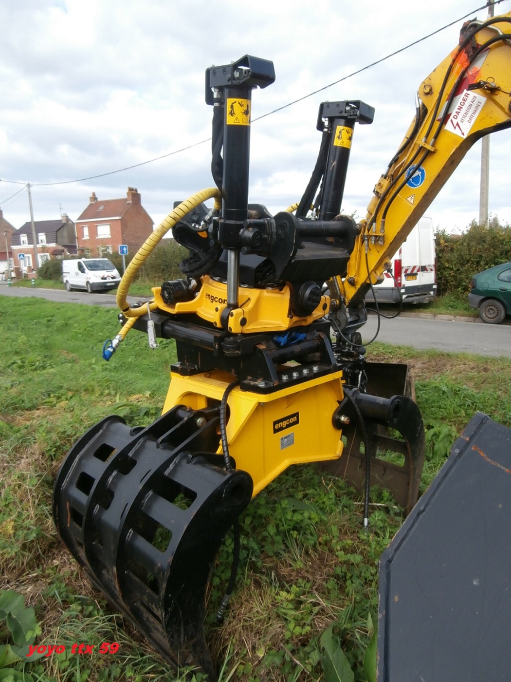 C'est bien un tiltrotator Engcon. Il est équipé d'une pince à tri.
